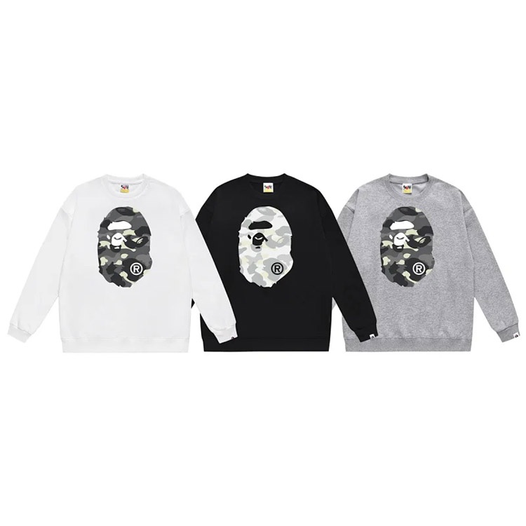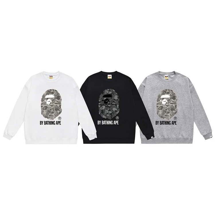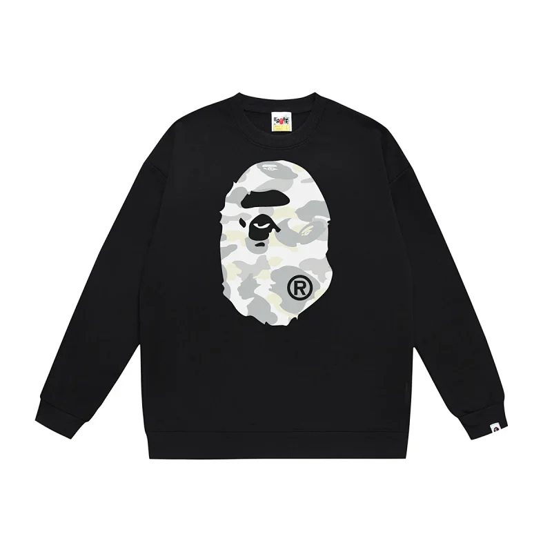 A BATHING APE BAPE Camouflage Letter Ape Print Crewneck Sweatshirt-5145