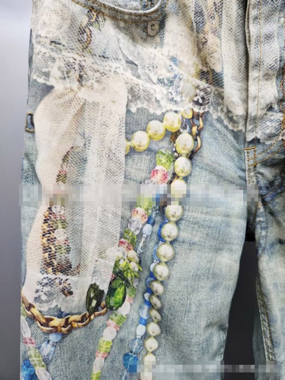 Acne Studios 1981 Series 3D Lace and Pearl Chain High-Waisted Jeans-5458