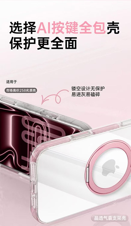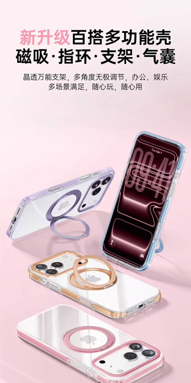 Home > Apple 17 Magnetic Transparent Rotating Stand Drop-Proof Phone Case-4625