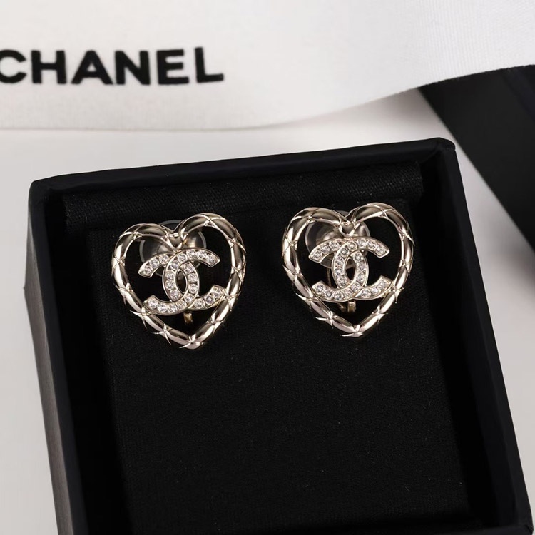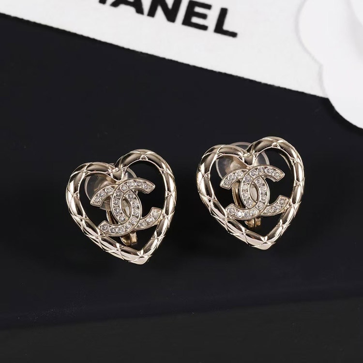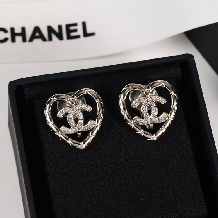 Home > Chanel gold diamond heart hollow double c rhinestone ear clip-3754