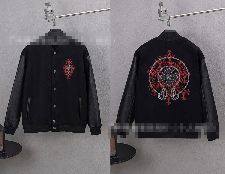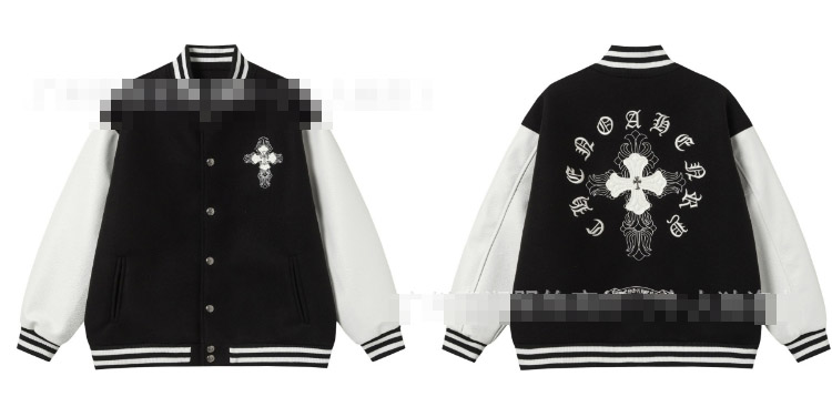 Chrome Hearts CH new classic horseshoe cross Sanskrit embroidered baseball jacket-5324