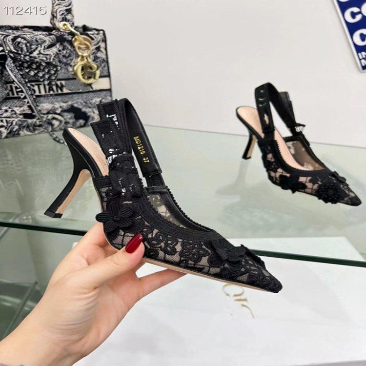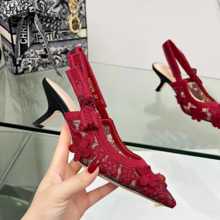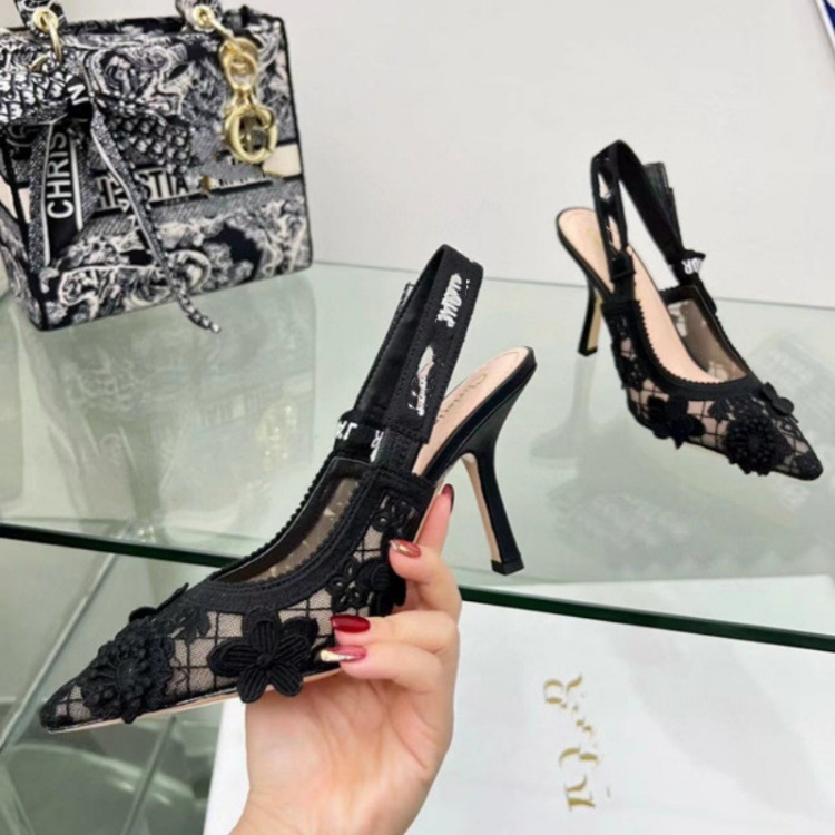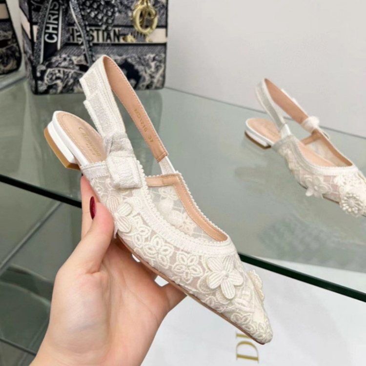 Home > Dior embroidered flat shoes with bow and lace cutouts-5615
