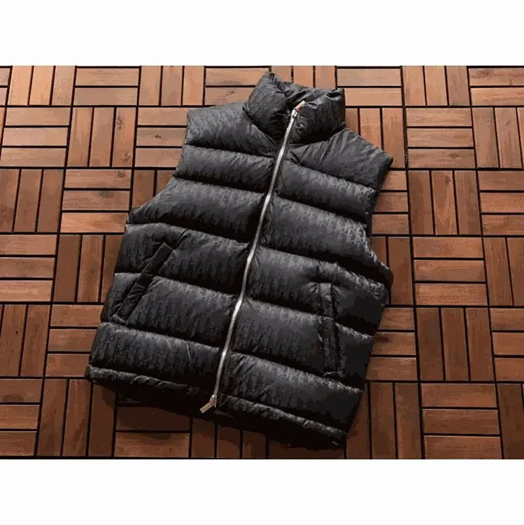 Dior zipper stand collar quilted design down vest-4391