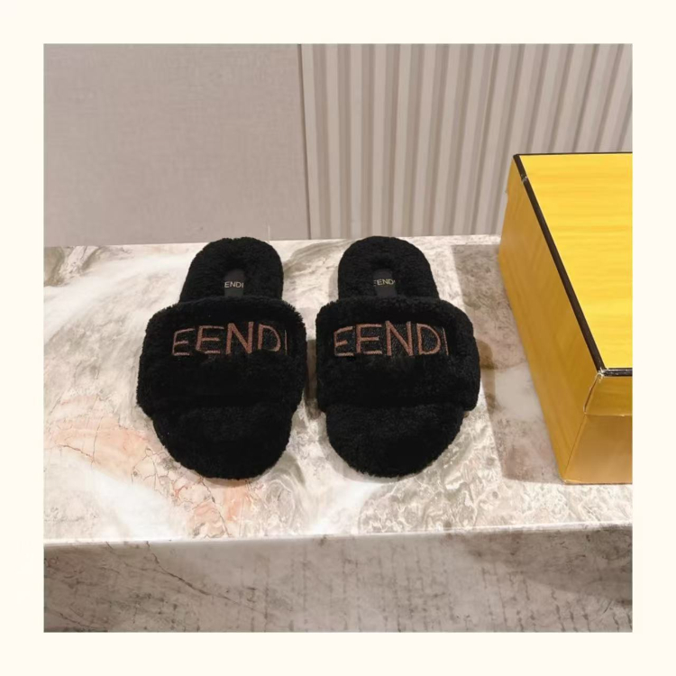 Fendi new design letter embroidered fur slippers-5689