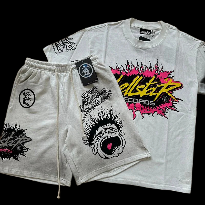 Hellstar printed loose short-sleeved shirt and shorts set-5185