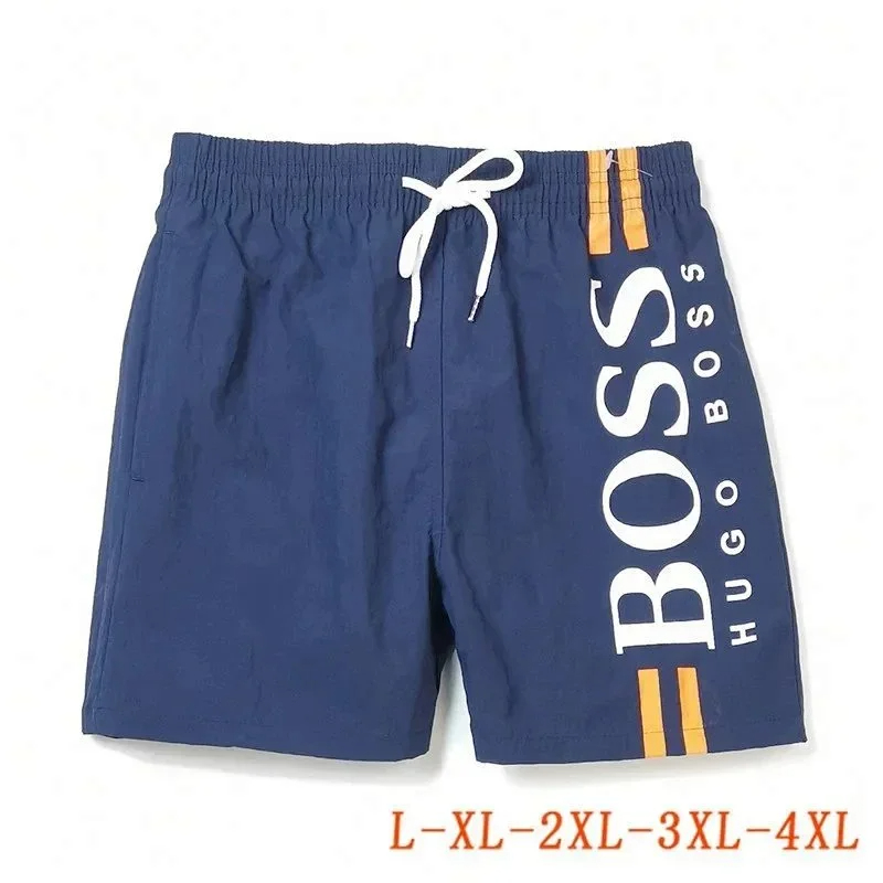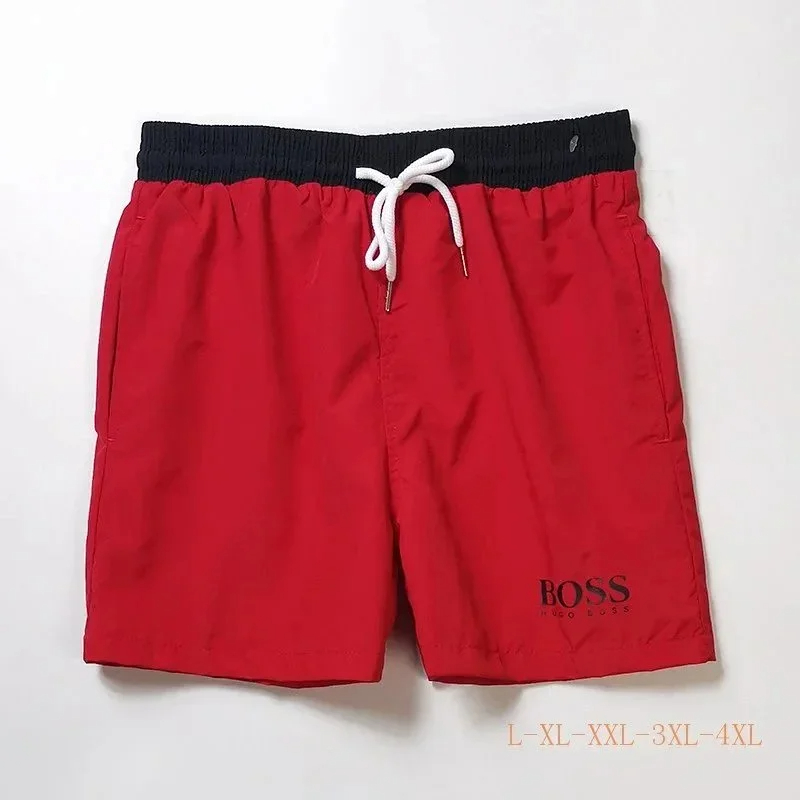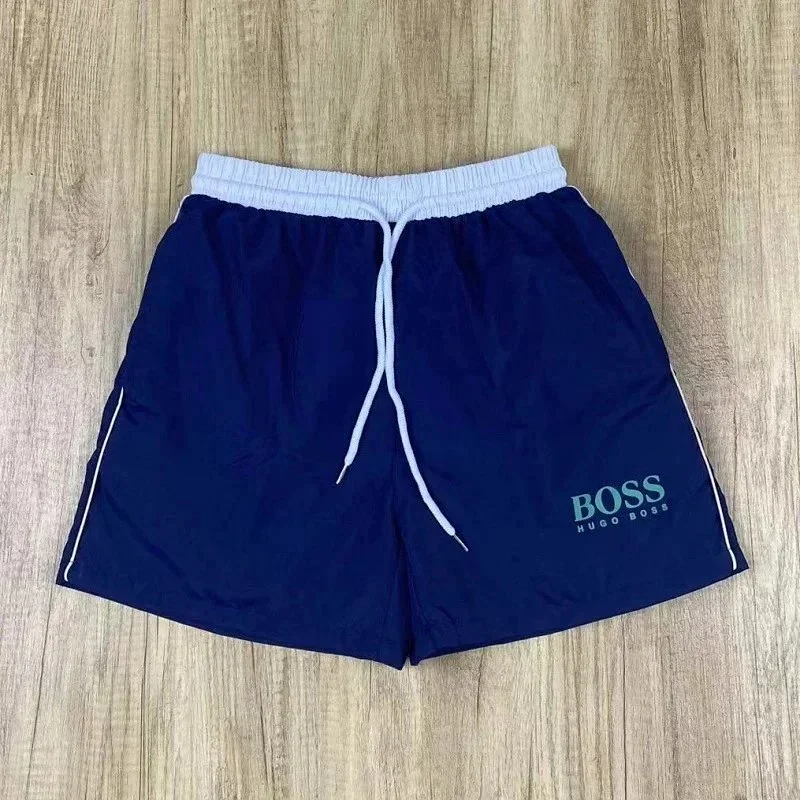 HUGO BOSS logo print quick-dry contrasting color waistband drawstring swim shorts-2881