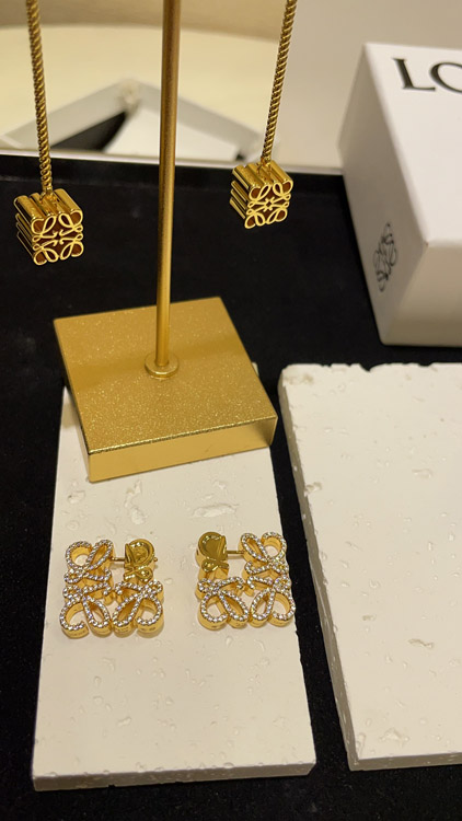 Loewe gold diamond cube earrings-3718