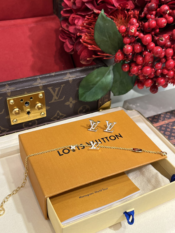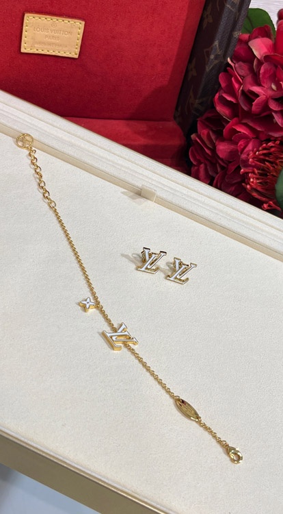 Louis Vuitton LV white enamel letter gold bracelet-3643