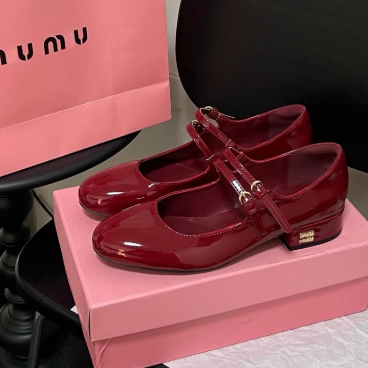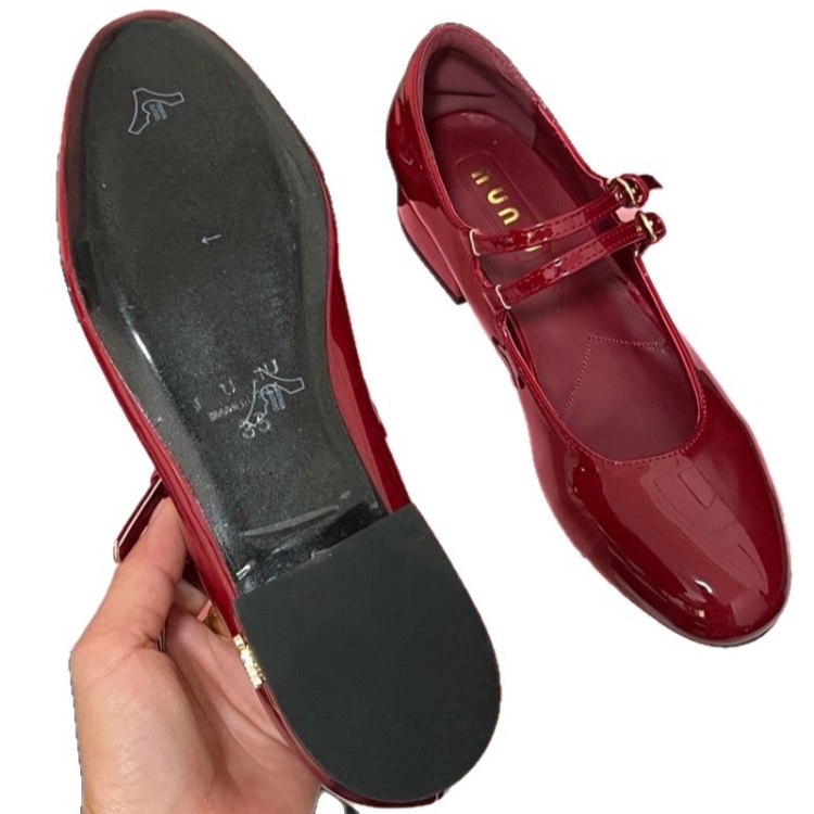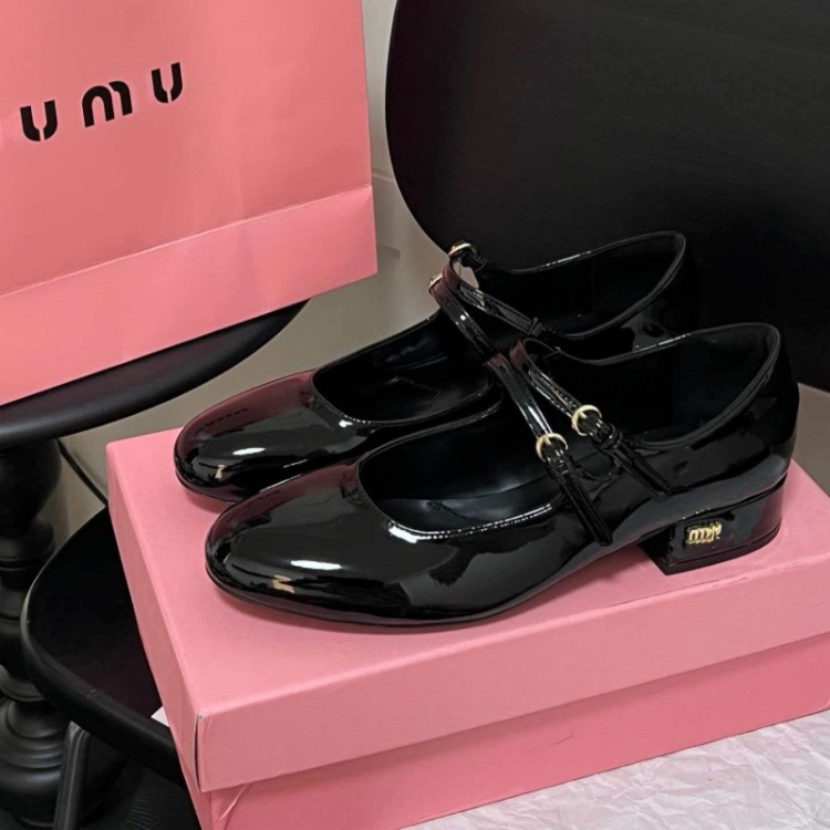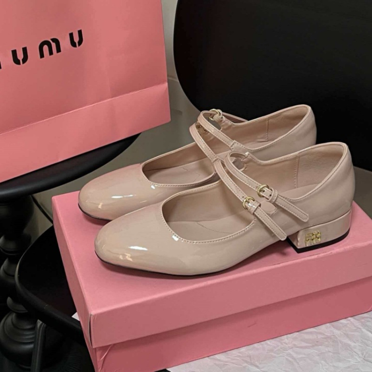 Miu Miu new double-strap round-toe mid-heel Mary Jane shoes-5720