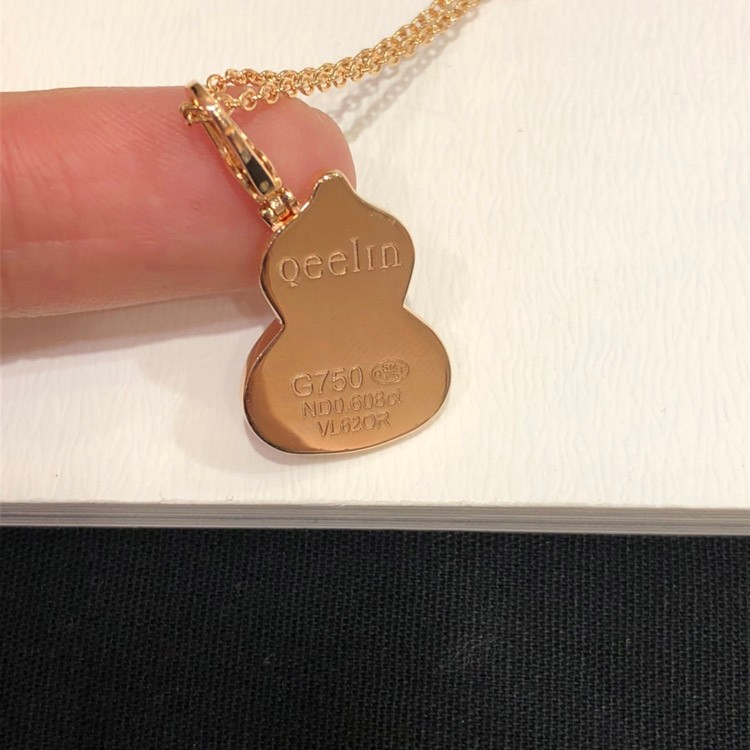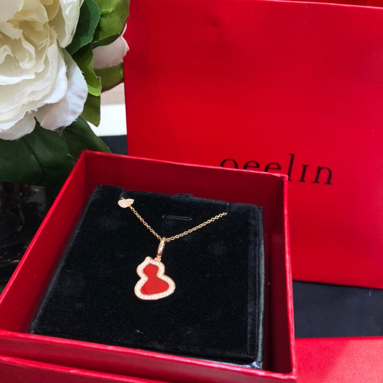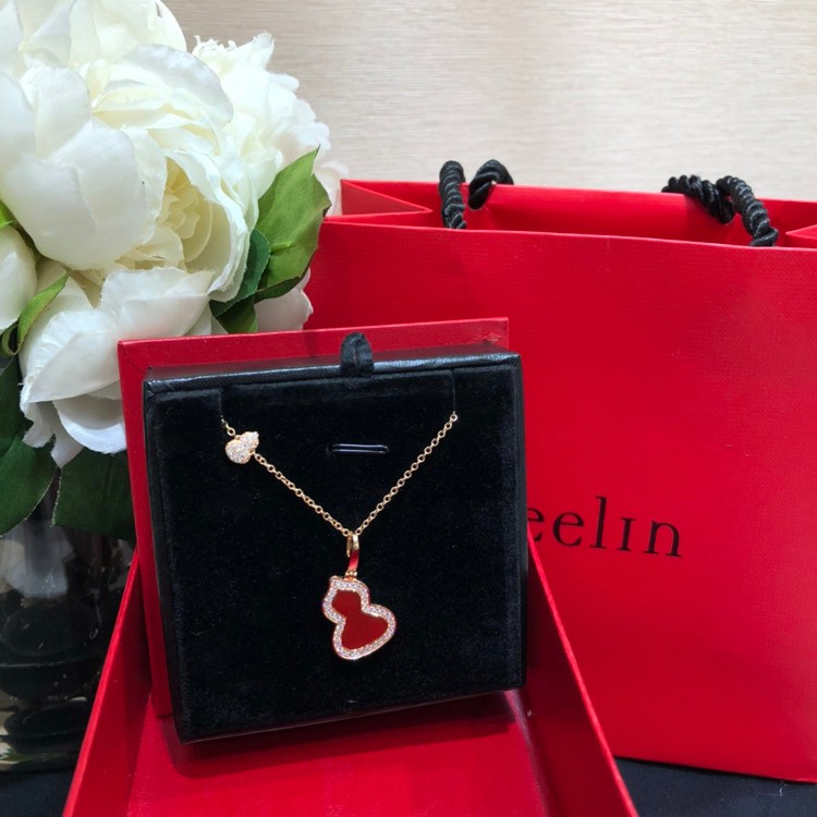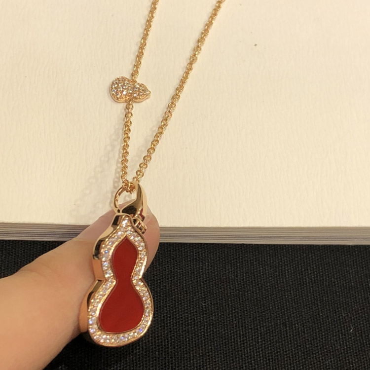Qeelin Diamond and red obsidian double gourd necklace-3884