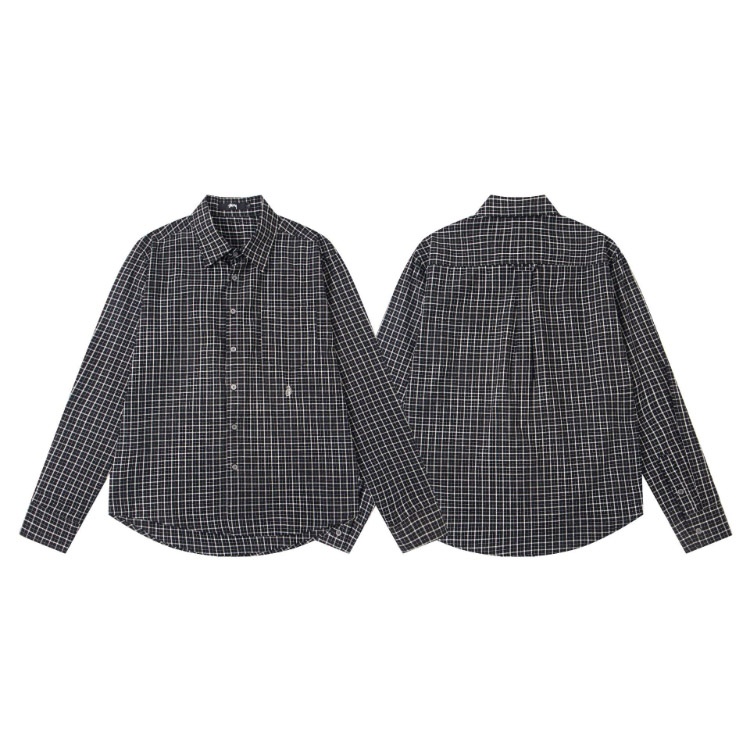 Stussy new loose-fitting casual Japanese-style long-sleeved printed shirt-5275