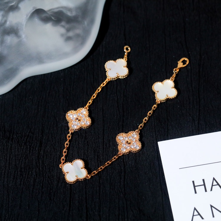 Van Cleef & Arpels classic five-flower diamond white mother-of-pearl bracelet-3781
