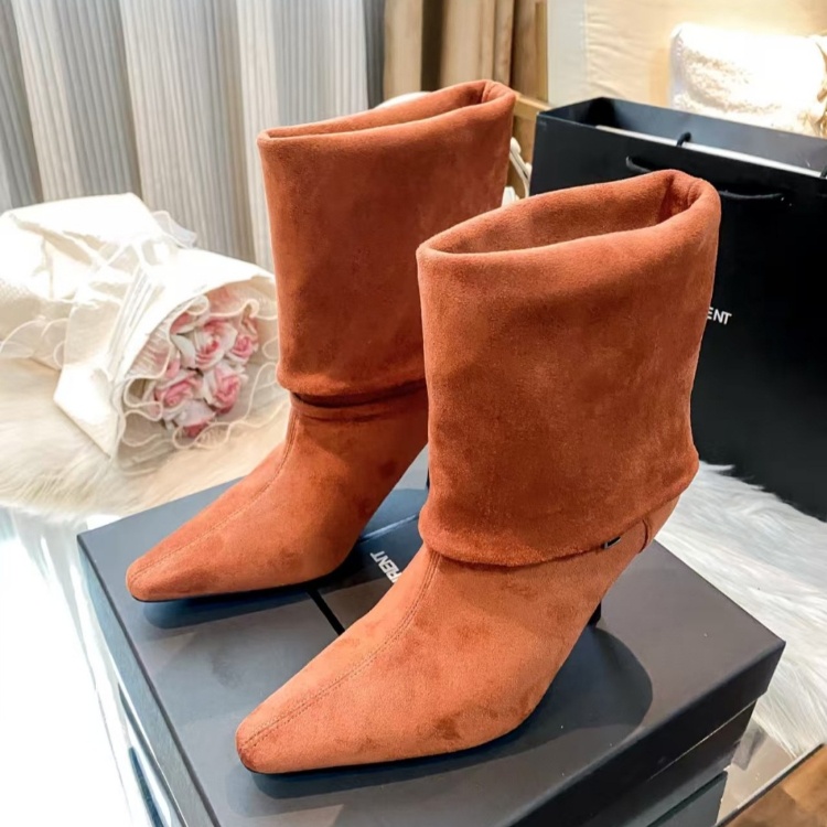 Home > Yves Saint Laurent YSL new style stiletto heel fold-over mid-calf boots-5727