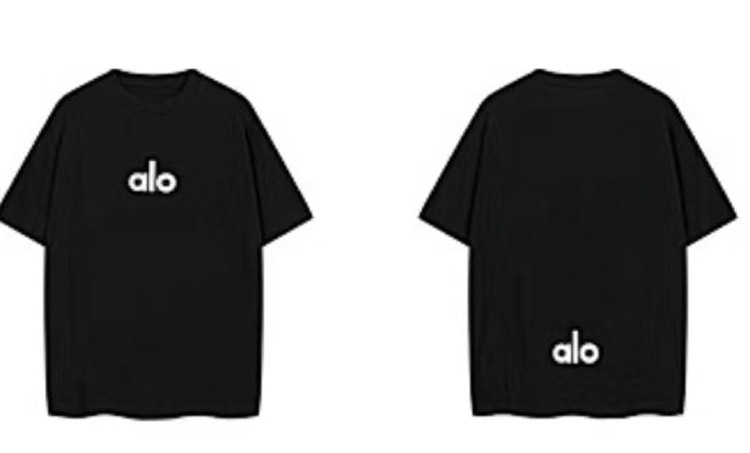 ALO Foamed Letter Hot Stamped Silver Short-Sleeved Crew Neck T-Shirt-5096