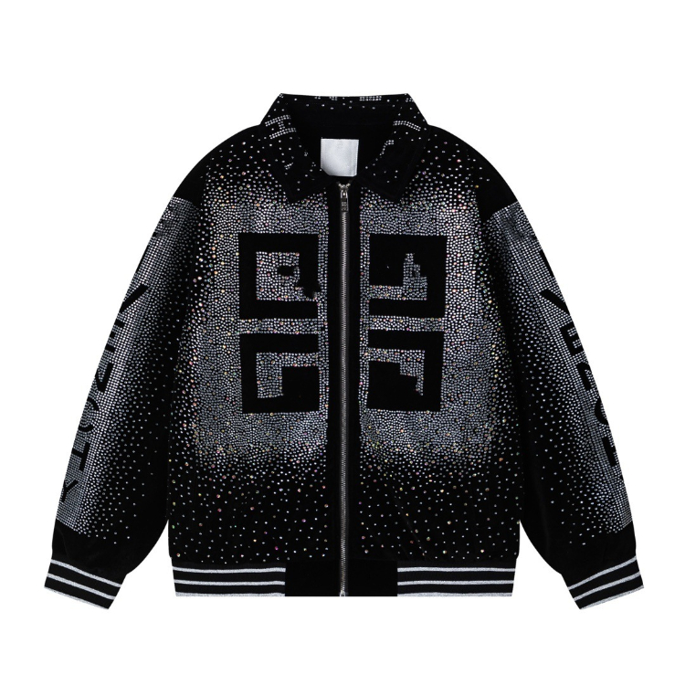 Balenciaga Givenchy velvet embroidered rhinestone men's casual loose baseball jacket-5328