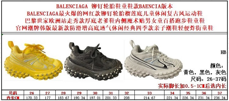 Home > Balenciaga mesh lace-up low-top rivet tire-soled children's shoes-4162