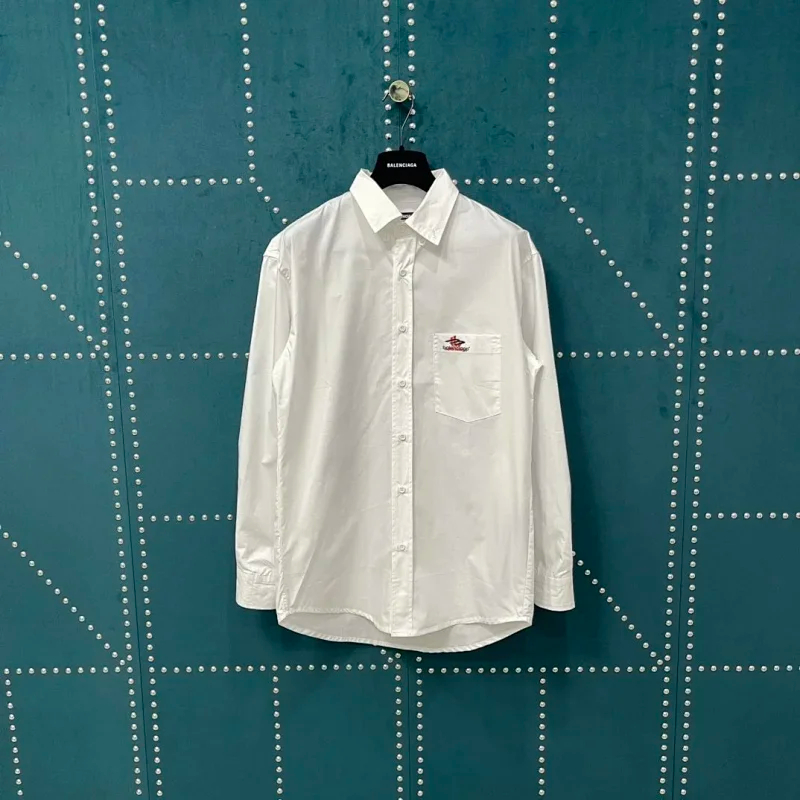 Balenciaga solid-color collared button-down long-sleeved shirt-5163