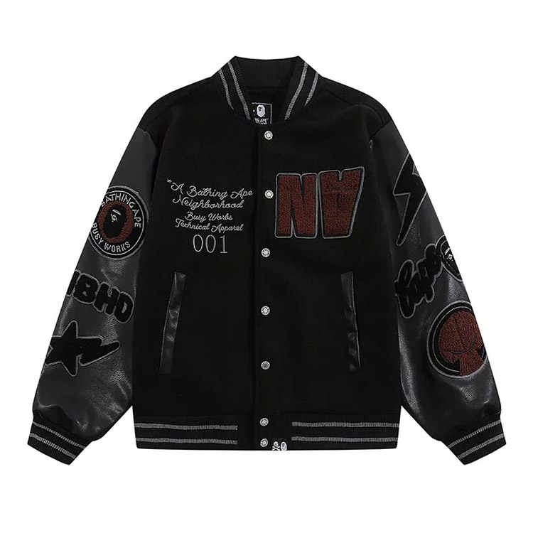 BAPE Colorblock digital embroidered patch baseball jacket-4242