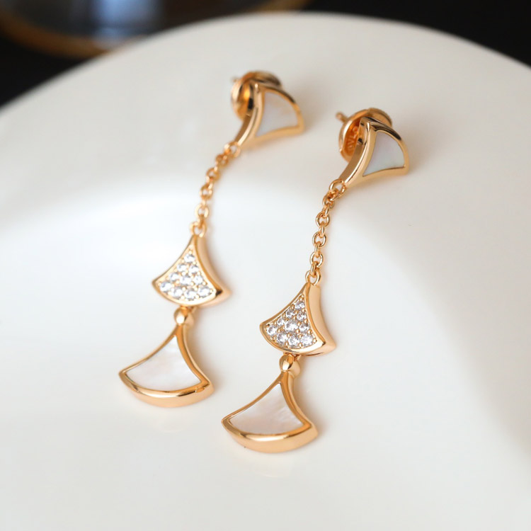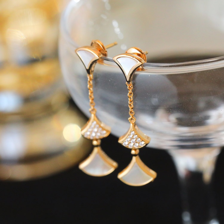 Bulgari fan-shaped white mother-of-pearl diamond earrings black agate long earrings-3861