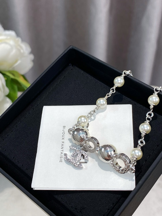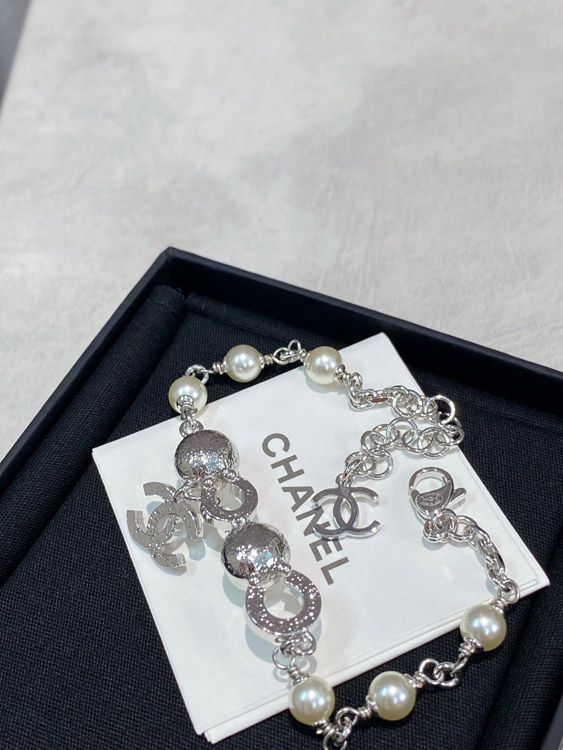 Chanel Double C Rhinestone Pearl Bracelet-3834