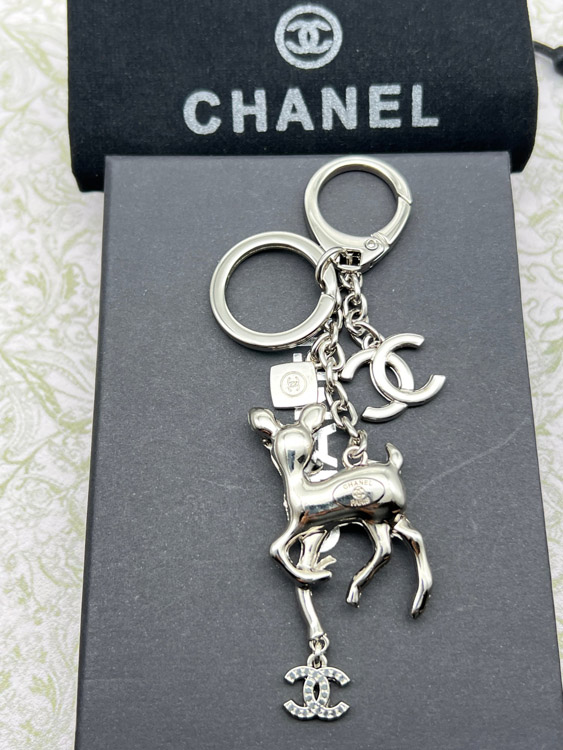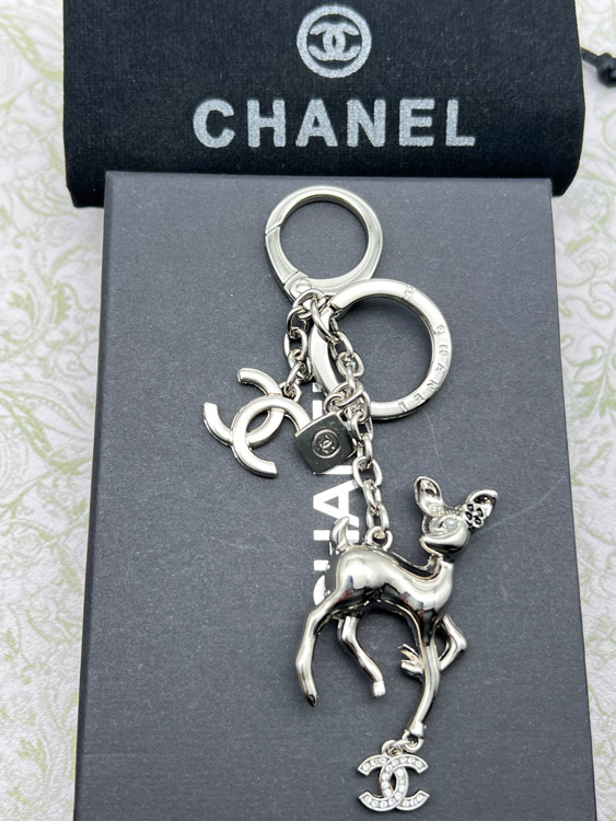 Chanel double c rhinestone pearl deer keychain-3835