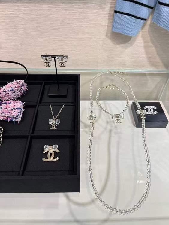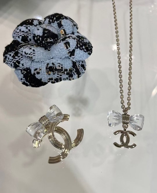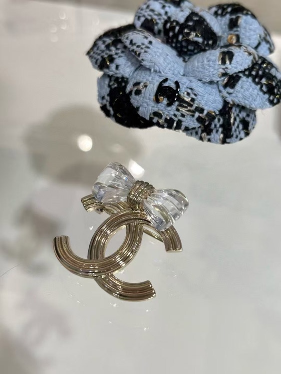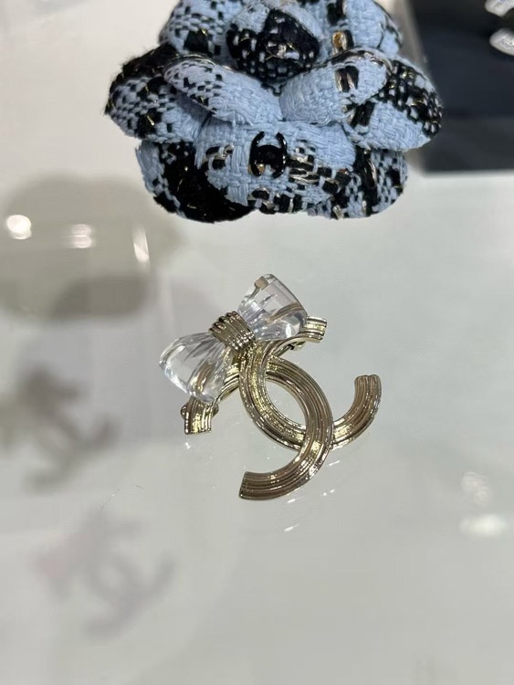 Chanel transparent acrylic bow gold double C brooch-3751