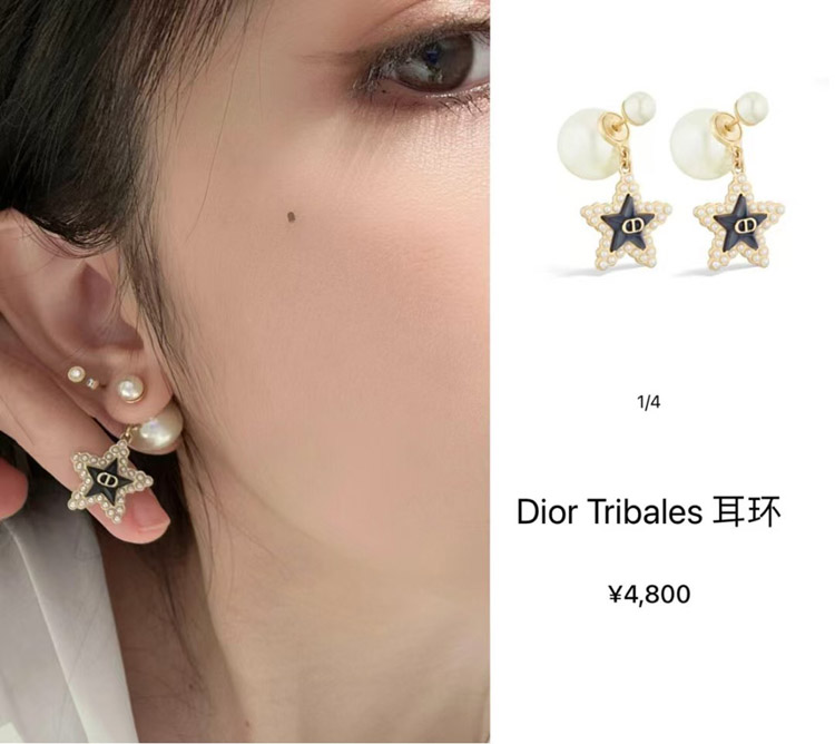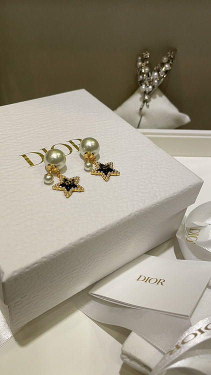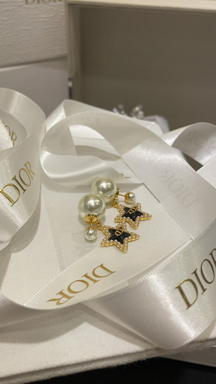 Dior navy blue star pearl double ball earrings-3891