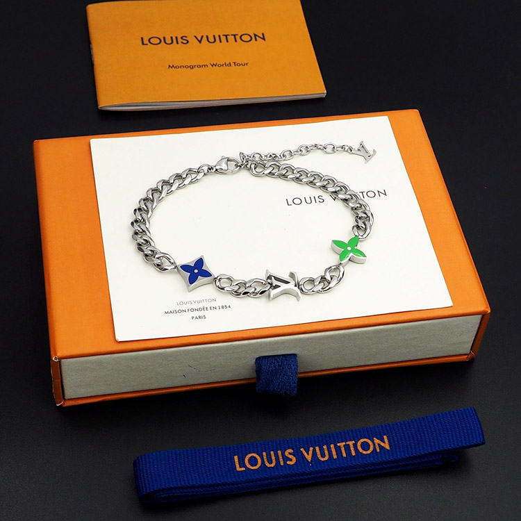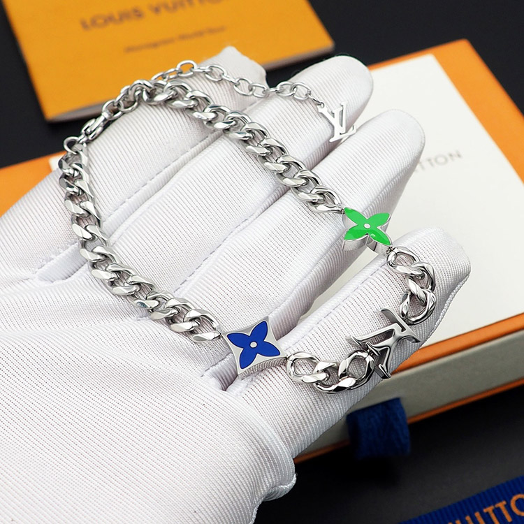 Louis Vuitton LV metal chain blue-green enamel bracelet-4053