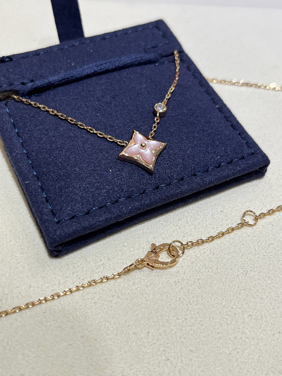 Home > Louis Vuitton LV Pink Mother-of-Pearl Floral Diamond Rose Gold Necklace-3726