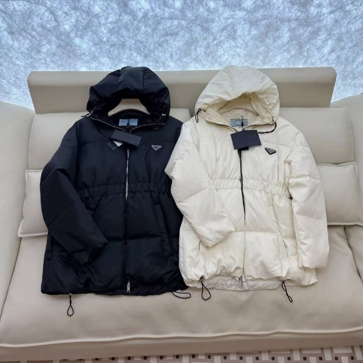 Home > Prada new zip-up hooded down jacket with elastic waist windproof and warm-5353